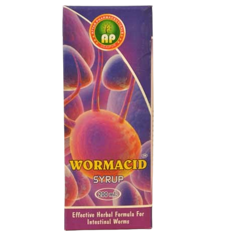 Wormacid Syrup is an Ayurvedic formulation which helps in Deworming of stomach. It is used to treat various types of intestinal worms like Hook worms and strong loides, Stercoralis.